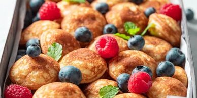 Delight in unlimited servings of our freshly made Dutch pancakes, featuring a variety of sweet fillings such as maple & golden syrup, lemon & sugar, and cinnamon. Complete your pancake with jam and cream, and top it off with your choice of milk or white chocolate, Kinder, Nutella, or Biscoff sauces, along with fresh strawberries, bananas, and mixed berries.