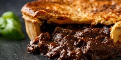 Indulge in our Pie & Mash feast, featuring a selection of gourmet pies served alongside your choice of creamy mash potato or chunky chips. Complement your meal with garden or mushy peas, and drizzle on our rich caramelised onion gravy. Complete with our selection of condiments, adding the perfect finishing touch to your pie perfection.