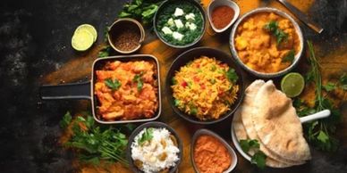 Indulge in our Indian Curry selection, featuring Chicken Masala, Lamb Karahi, and Potato & Cauliflower curries. Each curry is served with your choice of pilau rice, Nan, or Chapatti bread. Enjoy a refreshing salad garnish with mint & cucumber sauce, alongside Vegetable Samosas and onion bhajis. Complete with crispy poppadoms and a side of onion chutney.